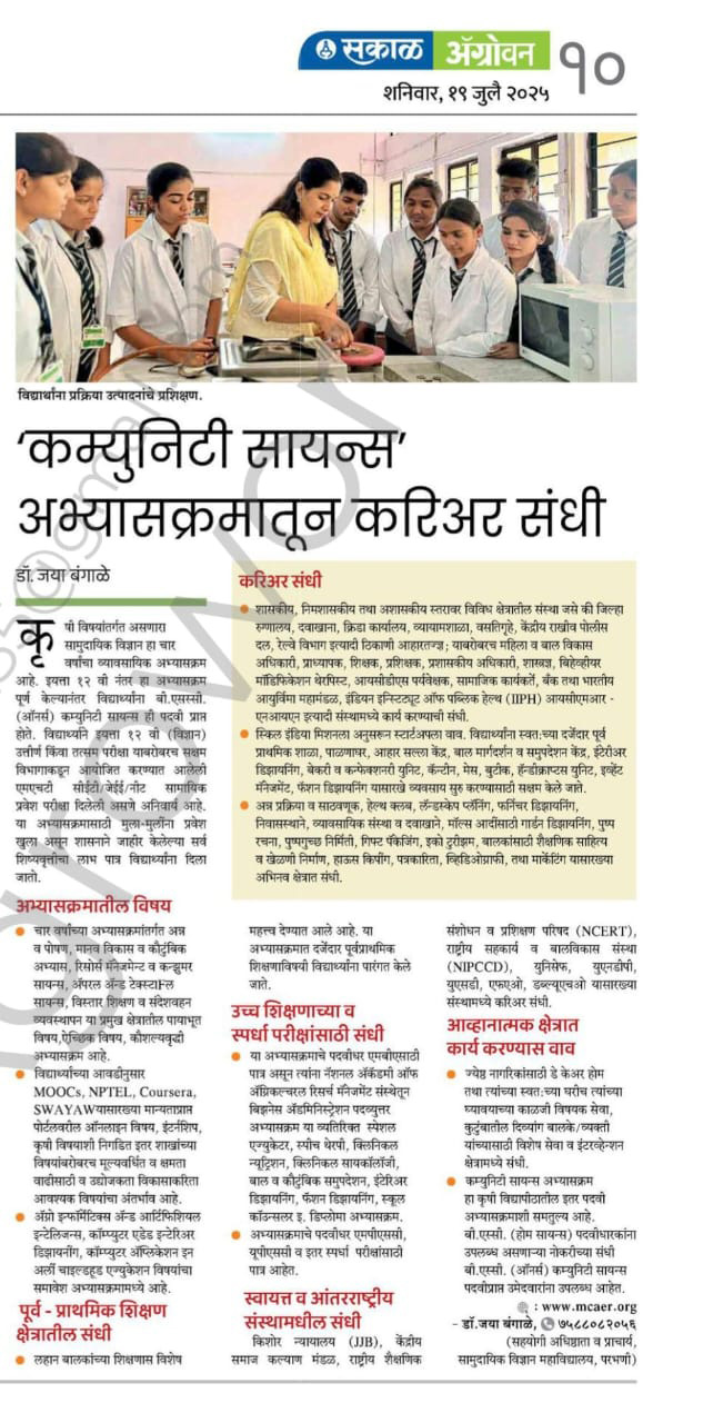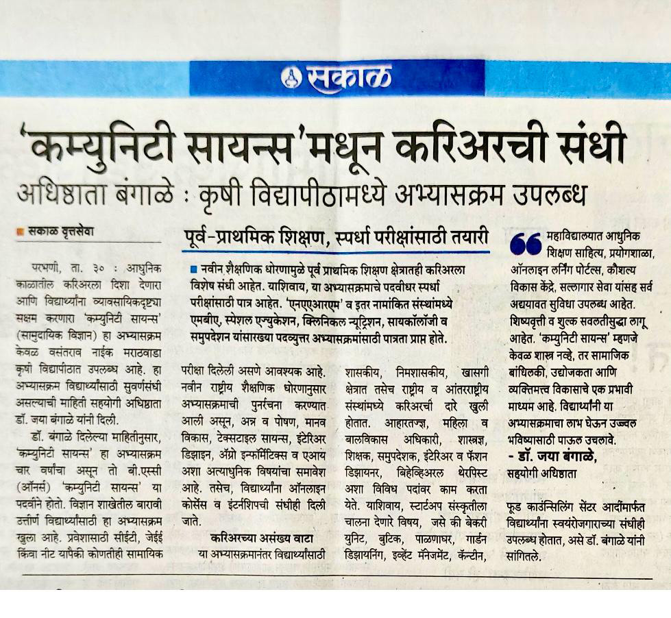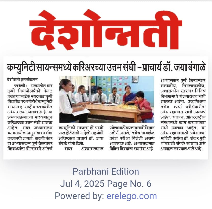 सामुदायिक विज्ञान महाविद्यालय, जि. परभणी - ४३१४०२ (महाराष्ट्र)